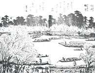 東海道守口宿(大坂)や船着き場伏見のにぎわい、枚方のくらわんか船、三十石船の船中情景、さらに伏見から洛中の三条大橋に至る名勝や社寺・旧跡・景観を詳しく描いています。(淀川両岸一覧)